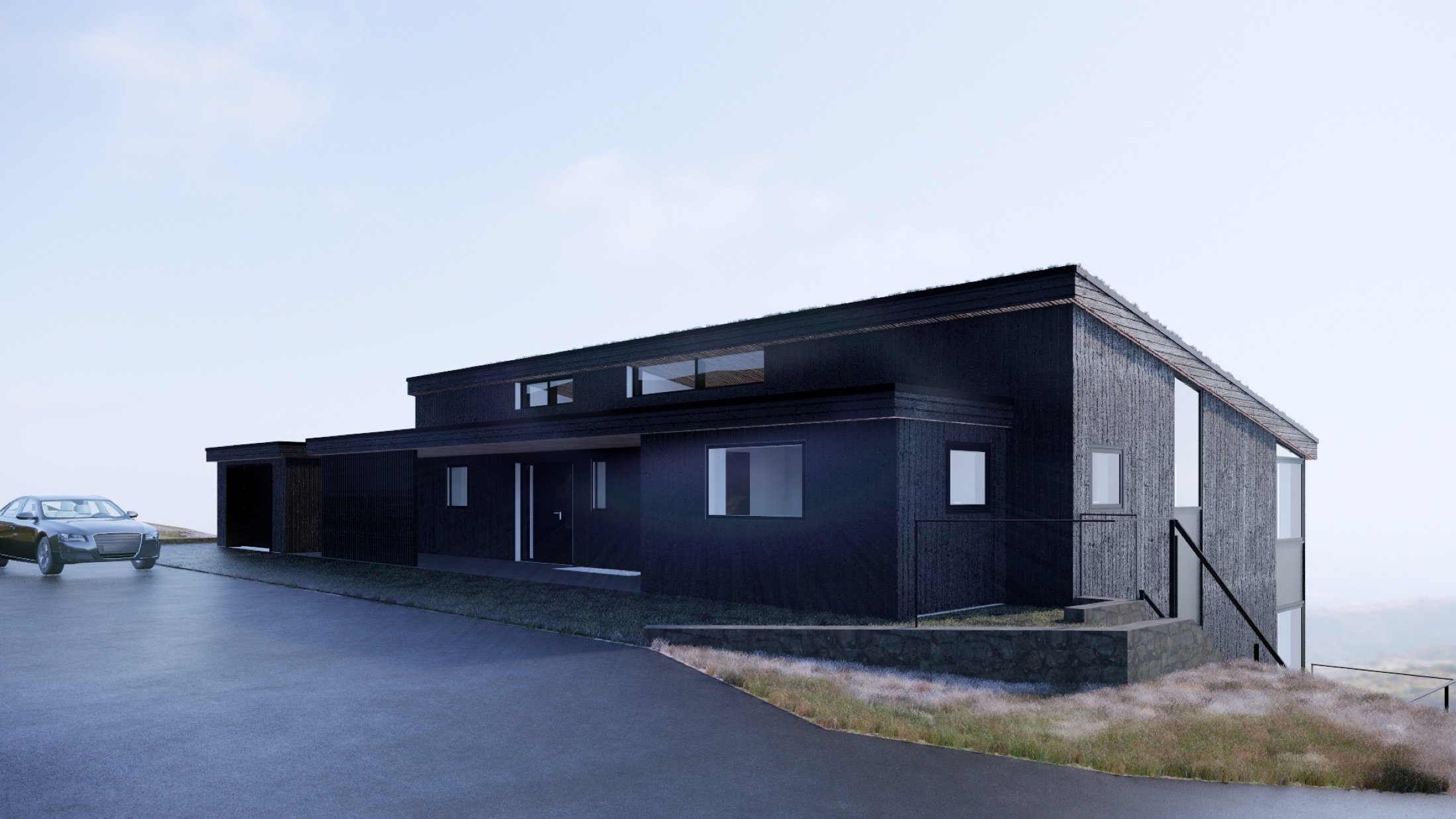 Boligprojekt med fokus på at udnytte udsigt, dagslys og terræn i en samlet arkitektonisk løsning.