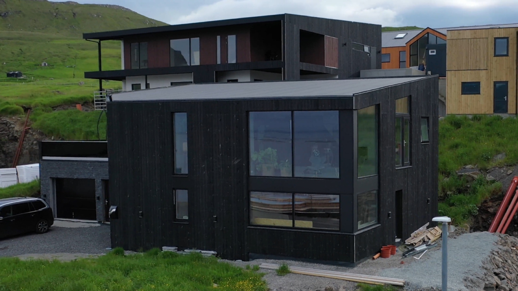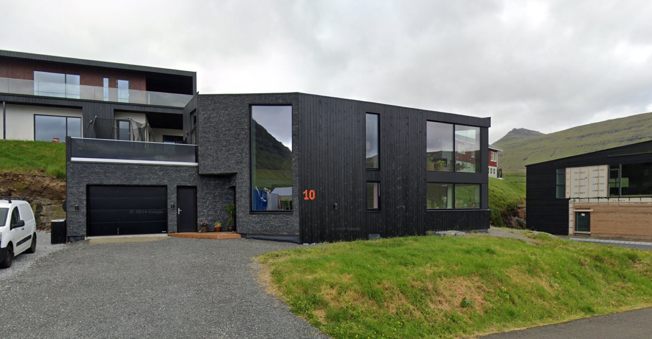 Denne to-etagers villa på Færøerne, med dens modige detaljer og nutidige arkitektur, adskiller sig ud fra det omkringliggende landskab.
