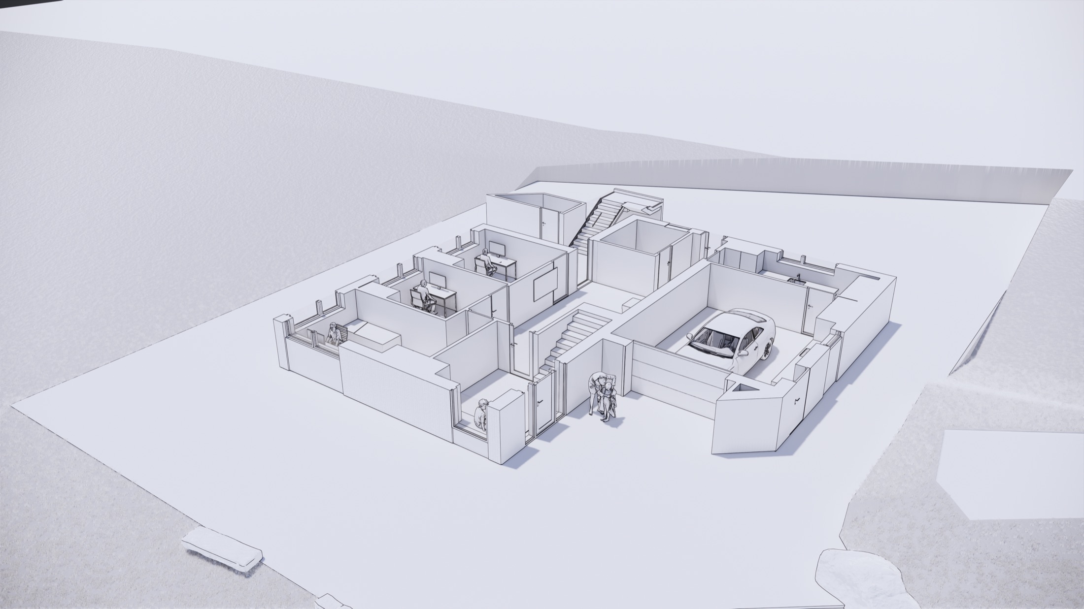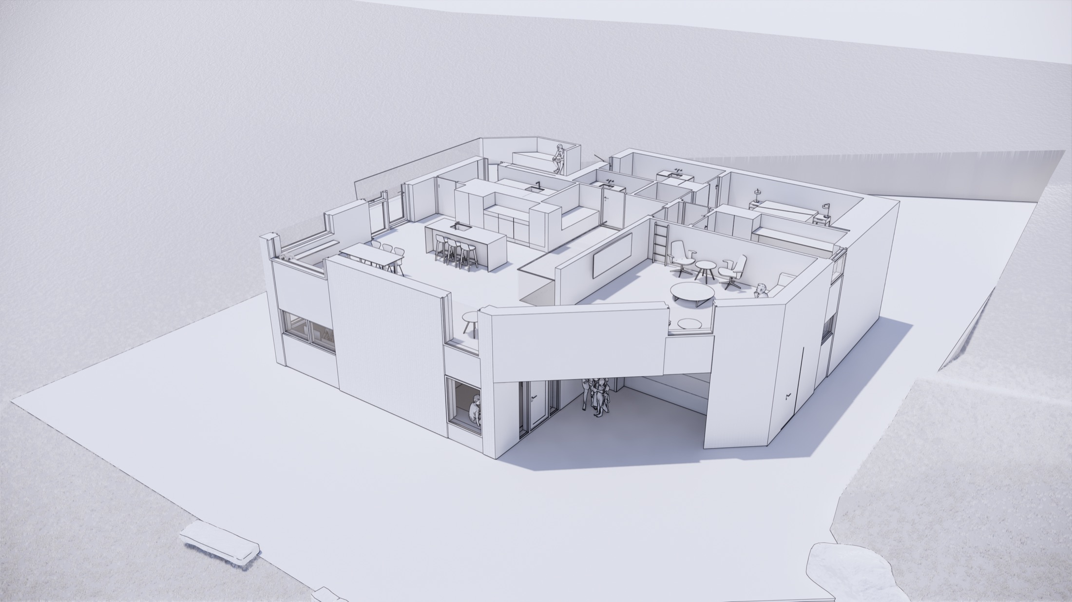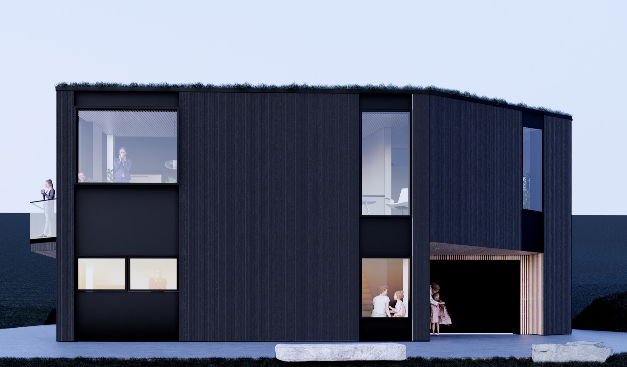 Denne løsning tilpasser ikke kun huset perfekt til det unikke terræn, men giver også huset en markant og skulpturel karakter, som harmonerer med de dramatiske færøske omgivelser.